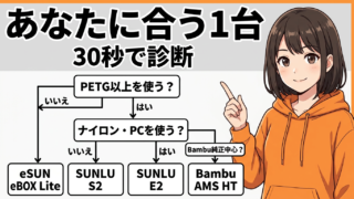 > 5,000円のeSUN eBOX Liteから5万円のSUNLU E2まで、フィラメントドライヤー4機種を1台ずつ徹底比較。買い方フローチャートで「あなたが買うべき1台」を即決できるようにまとめました。