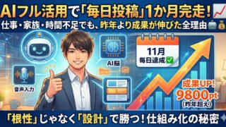 Uncategorized AIをフル活用して「毎日投稿」を1か月やってみたら、去年より成果が伸びた話📈🤖〜忙しくても、家族がいても、続けられた本当の理由〜