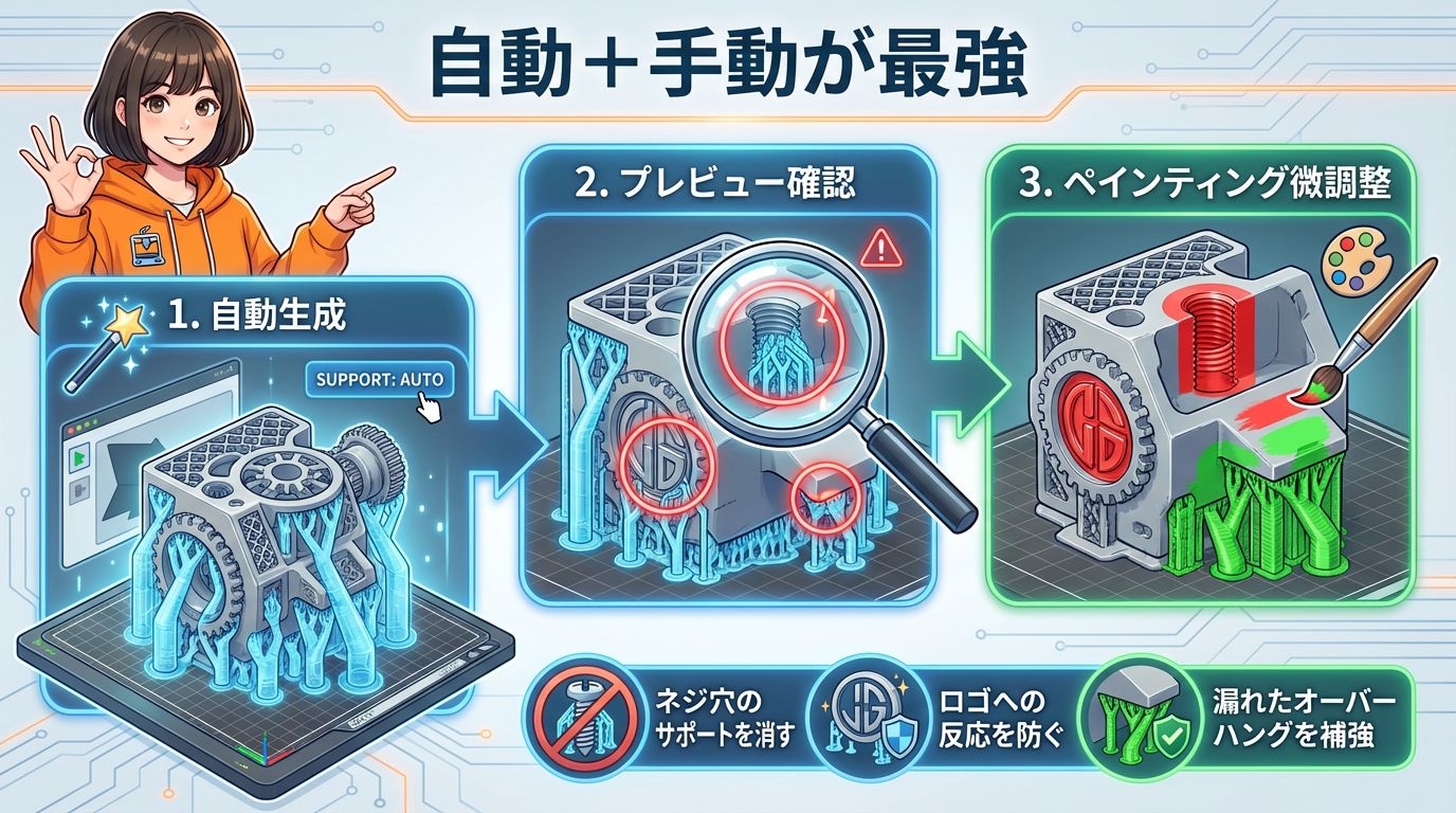 ããããã¯ãèªå+æåã®ãã€ããªãããããŸãèªåã§ãµããŒãçæ â ãã¬ãã¥ãŒç¢ºèª â åé¡ç®æã ããã€ã³ãã£ã³ã°ã§åŸ®èª¿æŽã