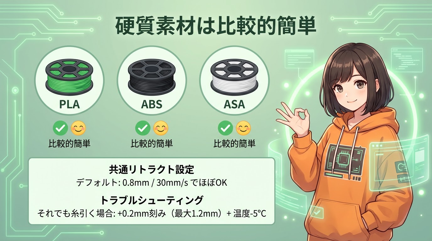 🔧 素材別リトラクション設定