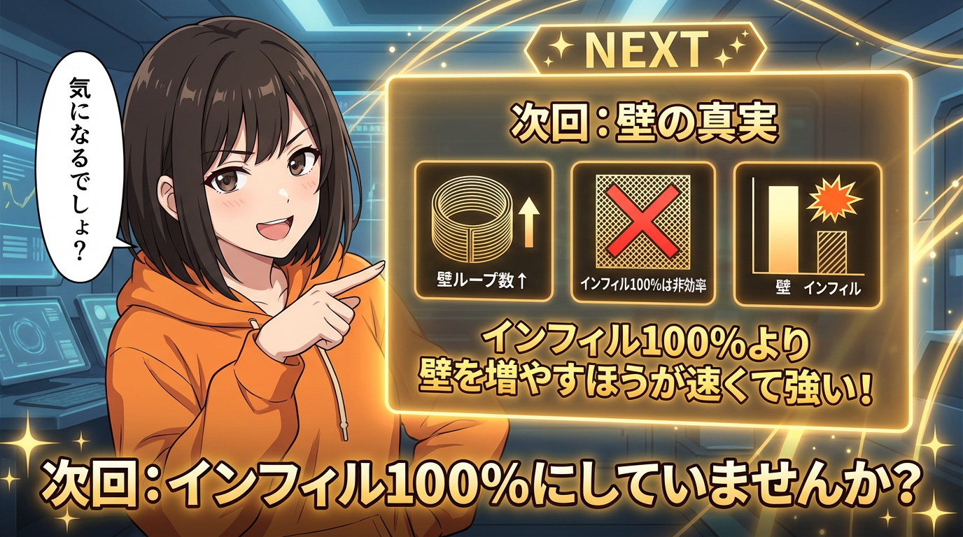 インフィル100%にしていませんか?実は壁のループ数を増やすほうが、遥かに強い。しかも速い。