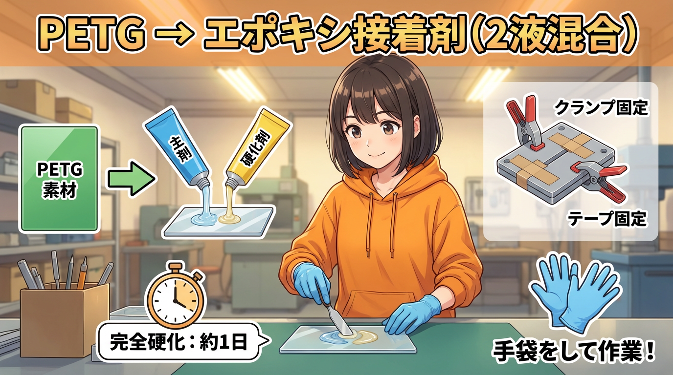PETGにはエポキシ接着剤(2液混合タイプ)