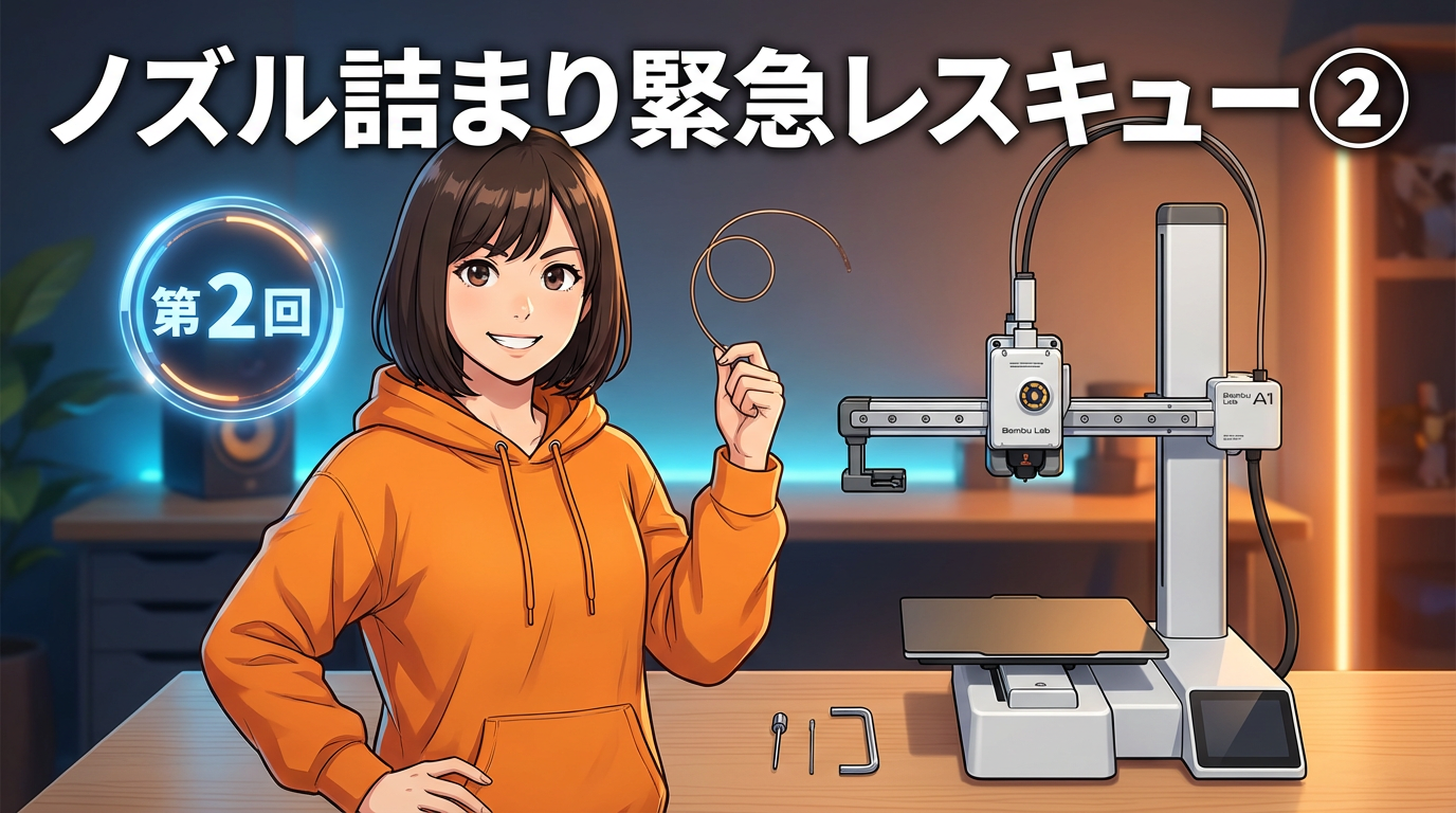 前回の「ノズル詰まり緊急レスキュー①」では、カチカチ音・かすれ・完全停止という3つの症状の見分け方と、高めの温度での手動押し出し&清掃ピンの初期対処法を紹介しました。