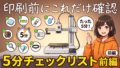 A4で印刷してラミネート加工して、プリンターの筐体横に常設する。ホワイトボードマーカーで印刷ごとにチェックを入れて、終わったら消す。