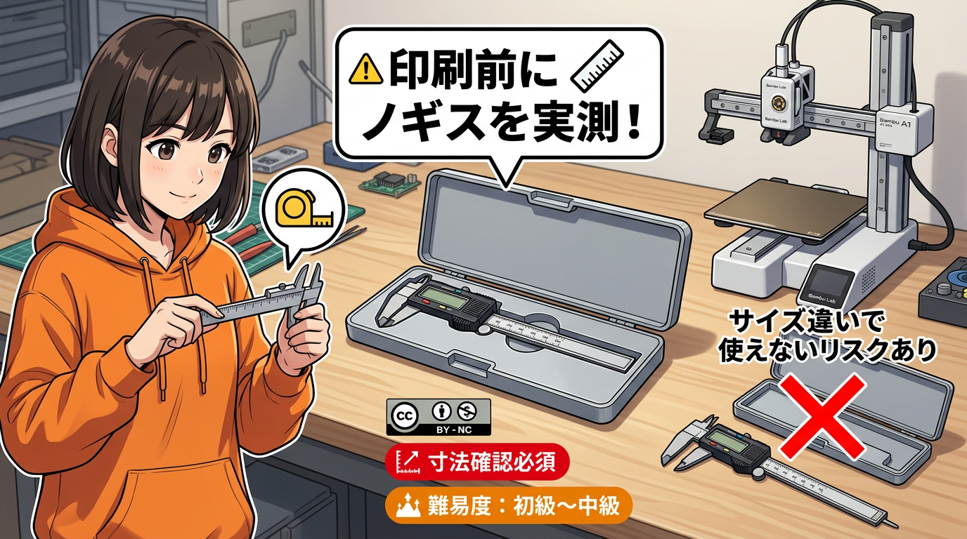 難易度は初級から中級。自分のノギスの寸法と合うかが全てです。合わなければどうにもならない。ライセンスはCC BY-NC。