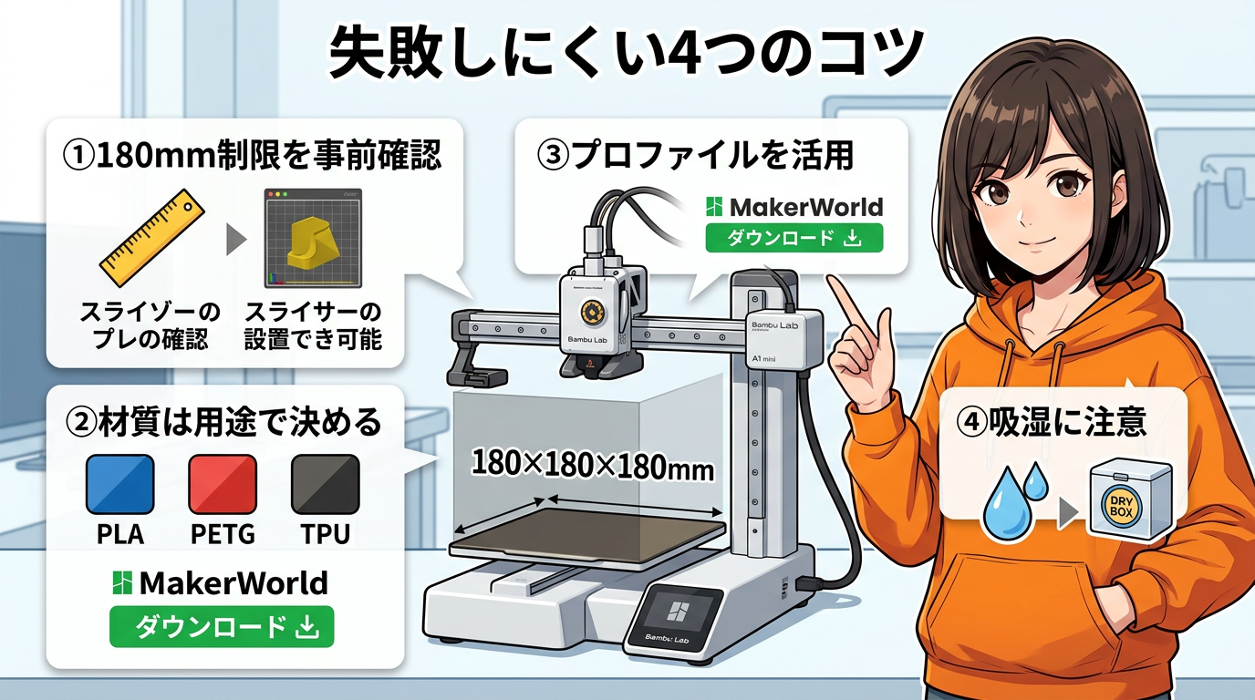 20モデル全体を通じて見えてくる、A1 miniで失敗しにくいコツをまとめます。