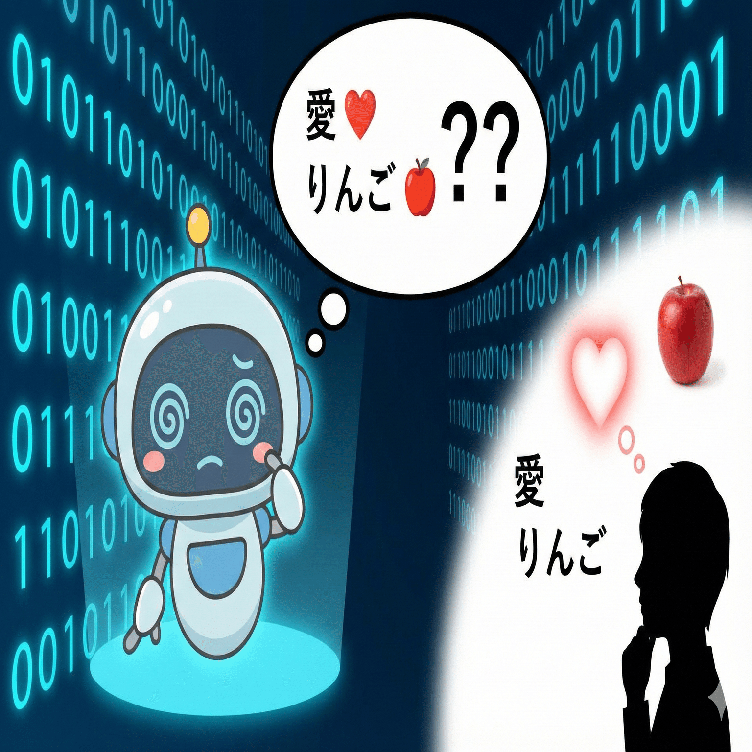 こうして、私たちが書いた熱いメッセージも、AIの目には [1024, 0056, 8990, 0321] という、ただの「数字の羅列」として映ります💻