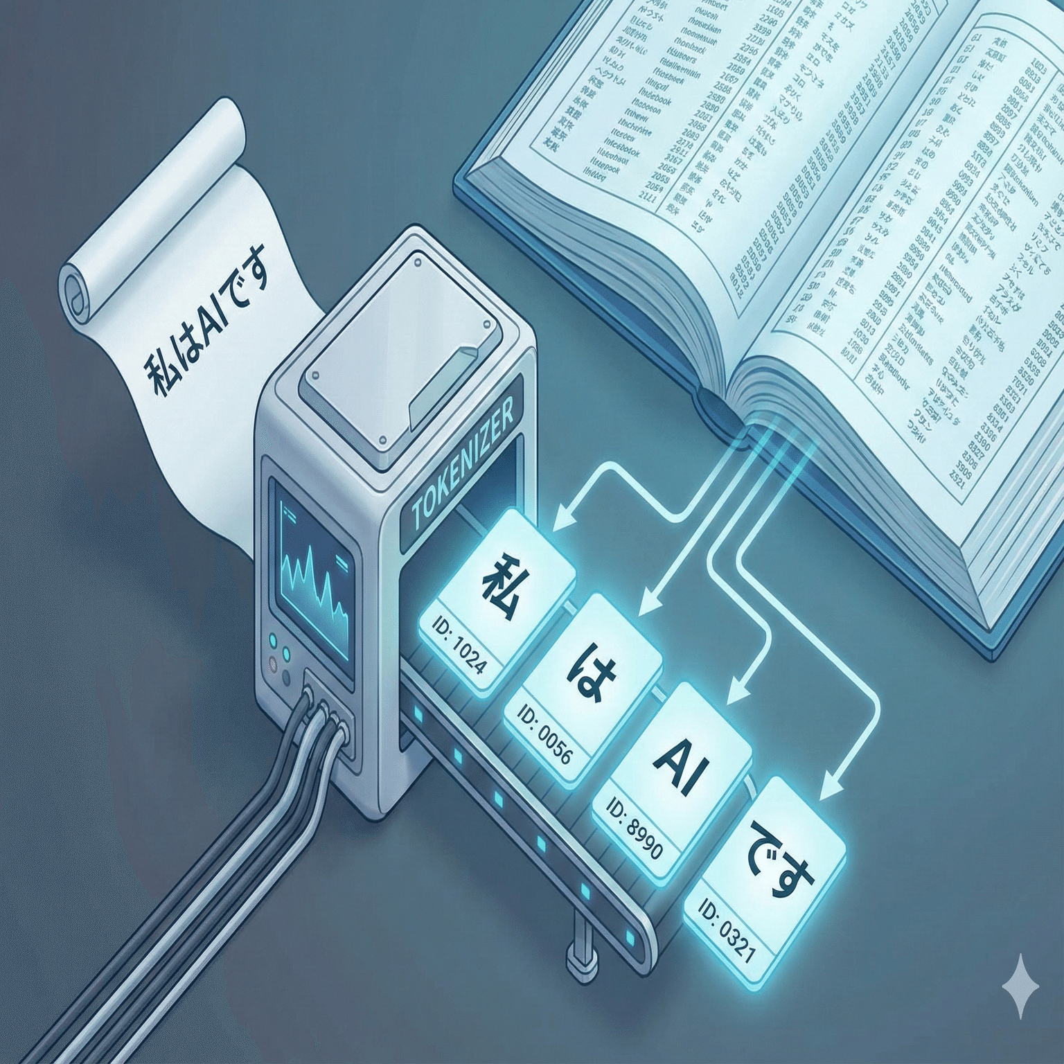 トークン化: AIはまず言葉を「文字の部品」にバラバラにして、「ID番号」に変換する(出席番号を振る)🔢