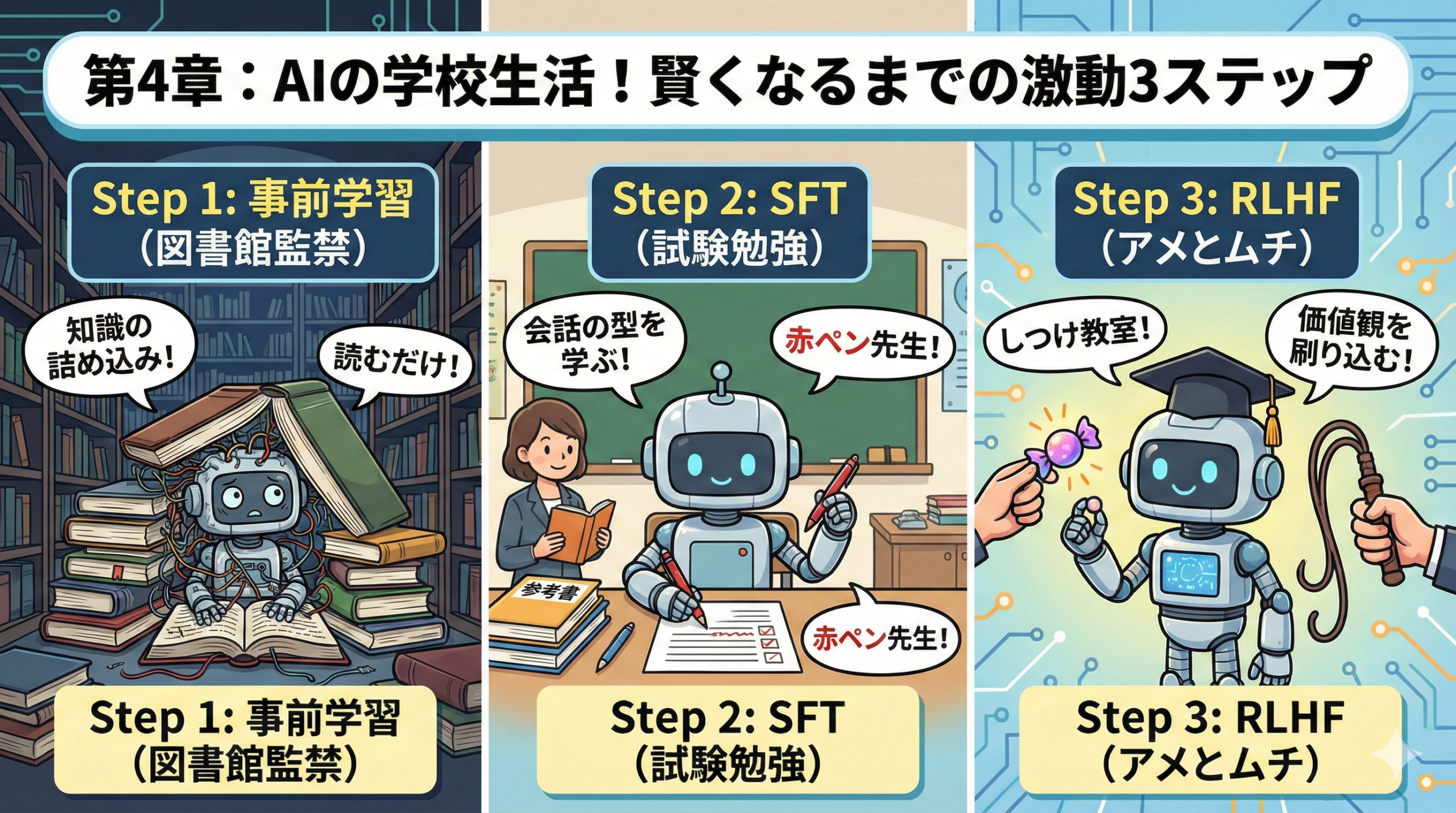 今日は、AIが一人前になるまでの、想像を絶する「激動の3ステップ」をドキュメンタリー風にお届けします。