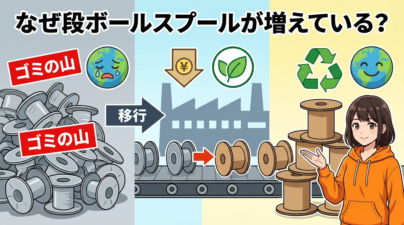 ①段ボールスプールが増えている理由と、ユーザーへの影響。