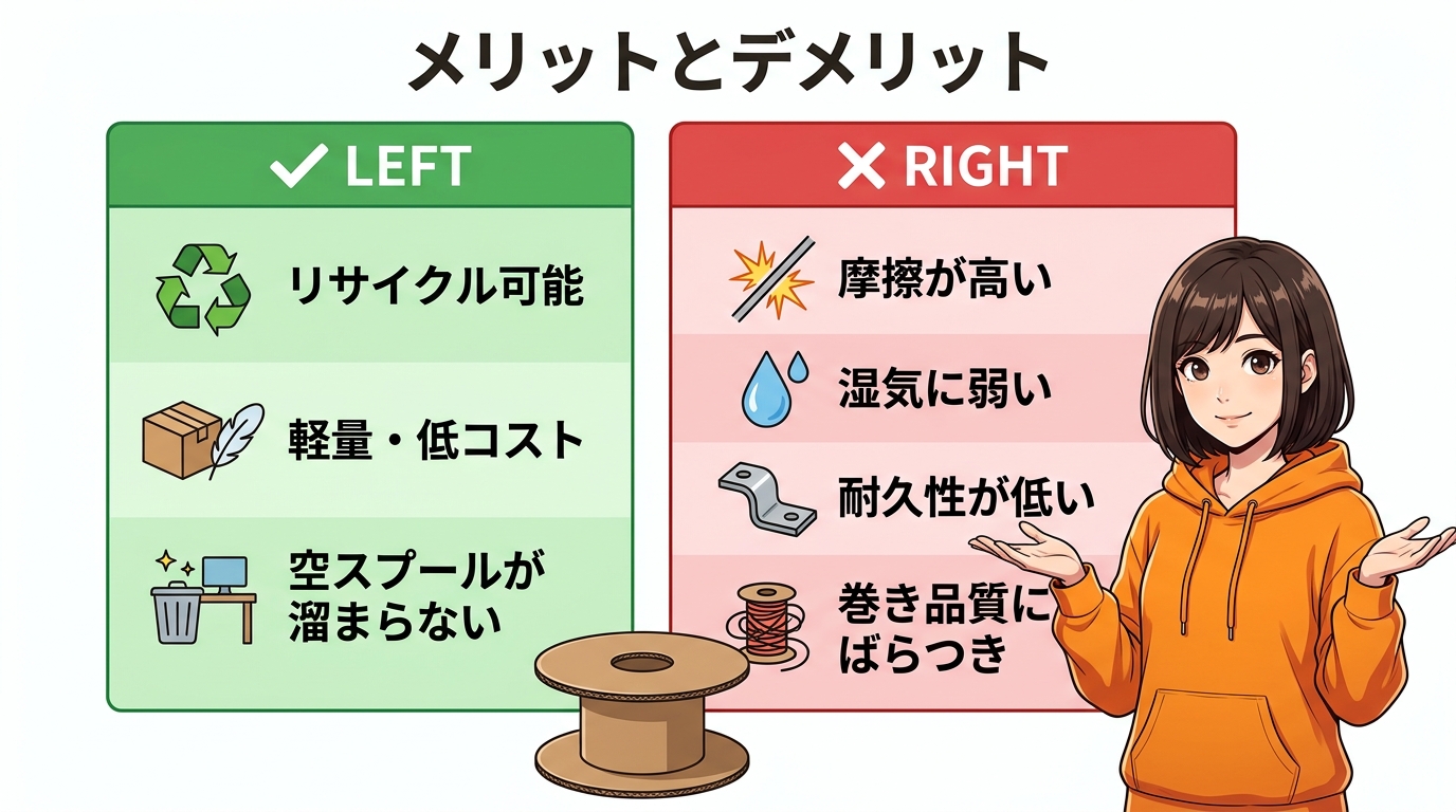 段ボールスプールのメリットとデメリットを整理しておきましょう。