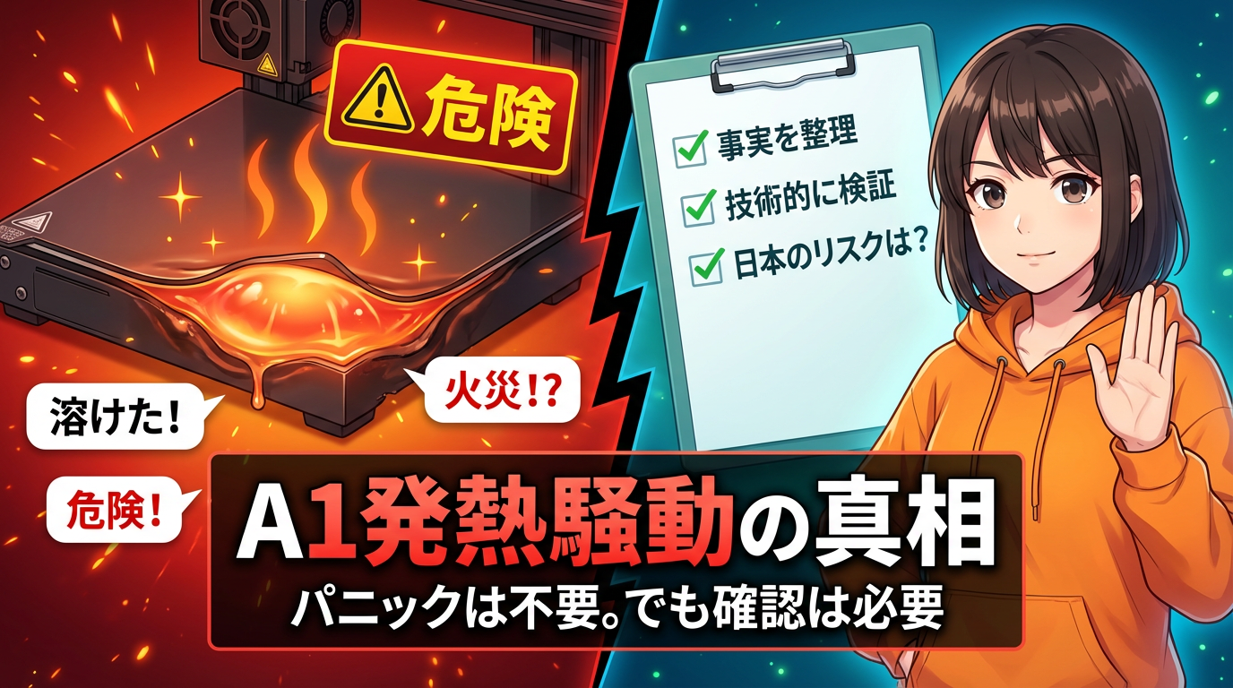ここまでの技術解説を踏まえると、SNS上でよく見かける「A1はすべて危険だ」「Bambuのプリンターは家を燃やす」という主張は、技術的な根拠に欠ける過度な一般化だと言わざるを得ません。