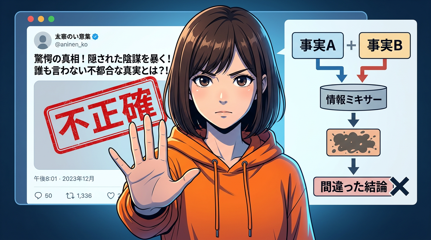 これらは事実関係を完全に逸脱した、いわゆるFUD(恐怖・不確実性・疑念)を意図的、あるいは無自覚に広める情報です。残念ながら、SNS上ではこのCランクの情報が感情を刺激するため、最も拡散力を持っています。