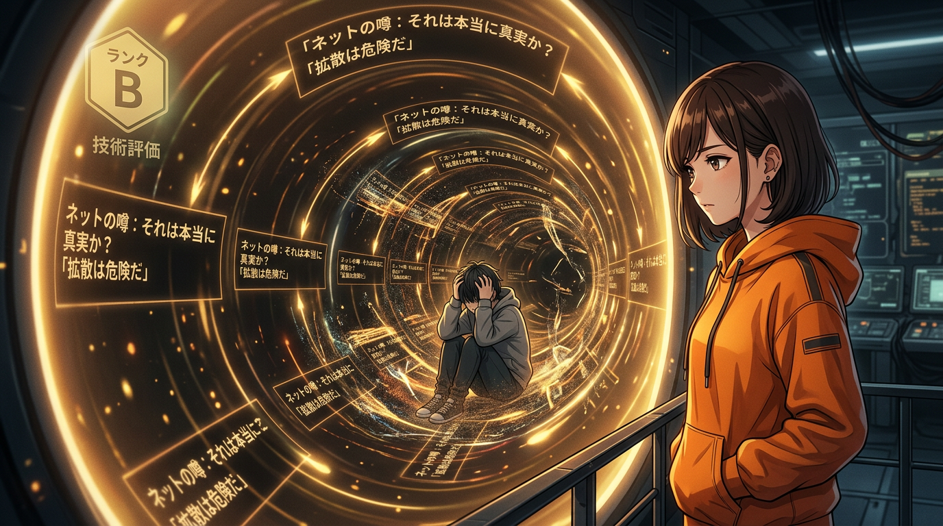 実態は、数件のSランク事象(確認済みの報告)が、インフルエンサーの強い言葉とともに何度も再投稿・引用されて、大量のBランク・Cランクの情報となって雪だるま式に膨れ上がっている状態です。台風のニュースで同じ被害映像がループ再生されると広範囲で被害が出ていると錯覚するのと同じ原理です。