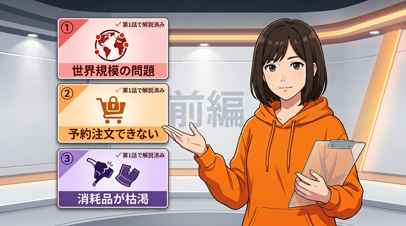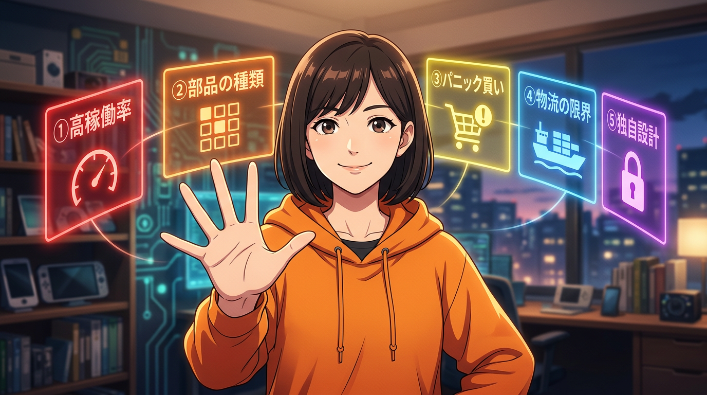 この5つが複合的に絡み合って、今の深刻な欠品状態を生んでいます。一つずつ見ていきましょう。