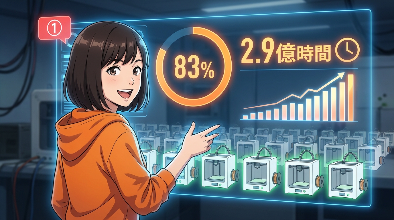 ①優秀すぎて使われすぎ。Bambu公表データで定着率83%、年間2億9000万時間超という異常な稼働率がメーカーの消耗予測を超えている。