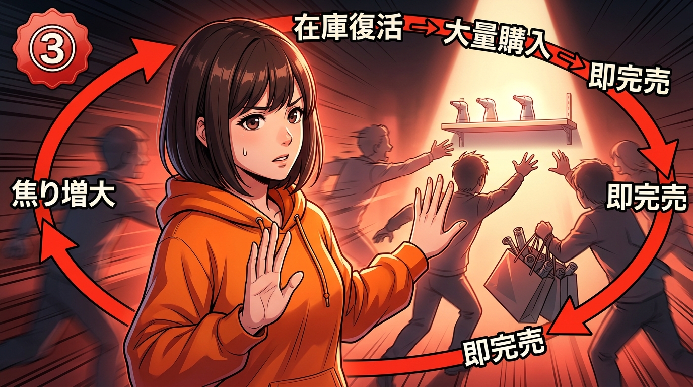 ③パニック買いの連鎖。ユーザー側の買い占め行動。