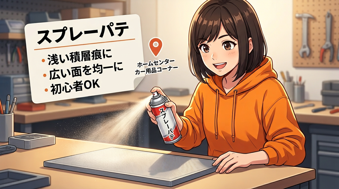 スプレーパテ ─ 広い面を手軽にカバー