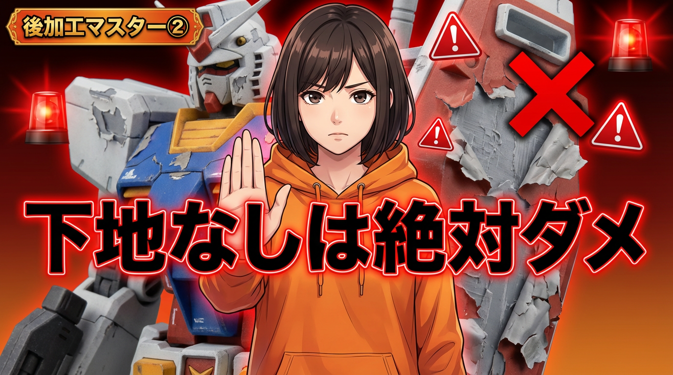 きれいに長持ちさせたいなら、サーフェイサーやプライマーは入れておくのが無難です。ここは手を抜かないことをおすすめします。