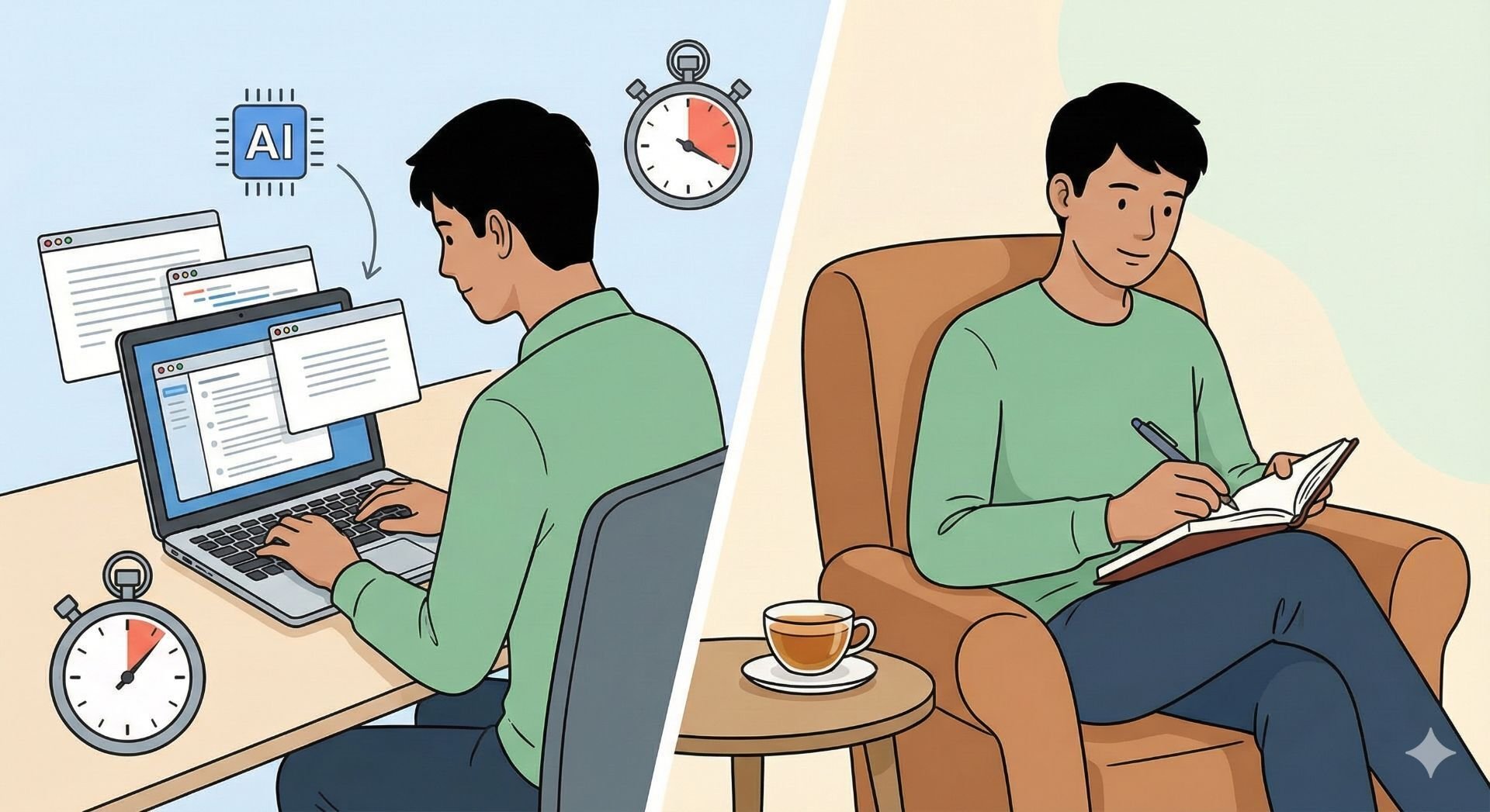 みなさんも、もし「AI使わなきゃ…」と少し疲れていたら、一度「やらなくていいこと」を探してみてください。
