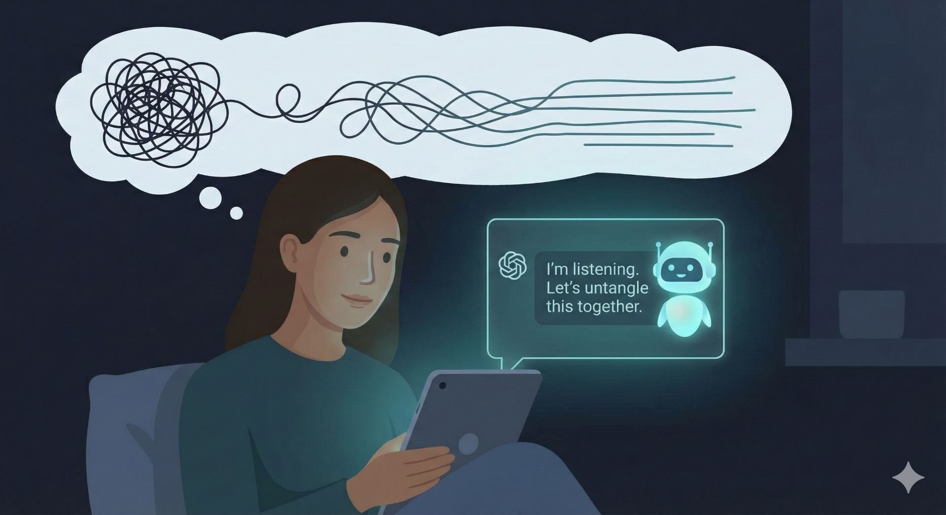 家族や友人に言うと心配させちゃうし、愚痴っぽくなるのも嫌だ…。そんな時、AIにただただ今の状況を話すんです。