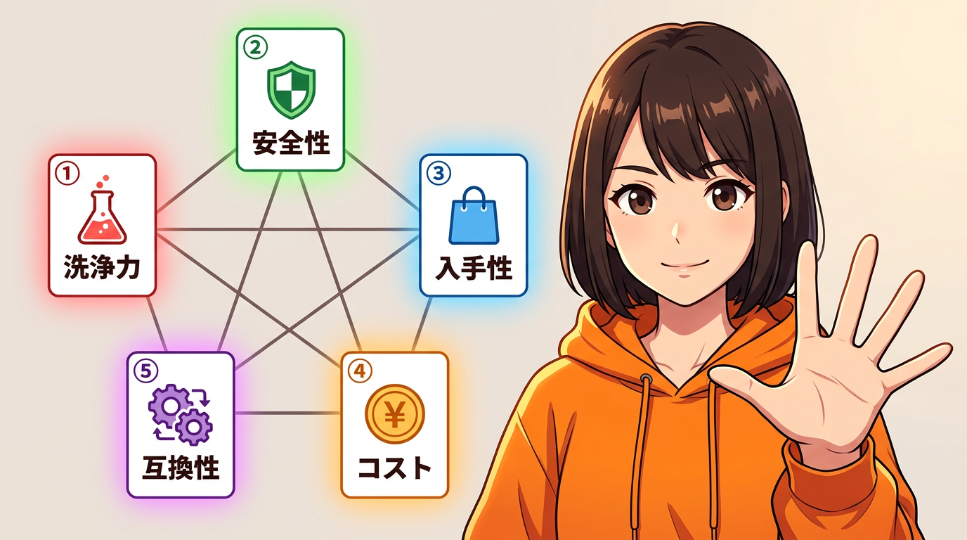 その前に、代替品を評価するポイントを5つ整理しておきます。