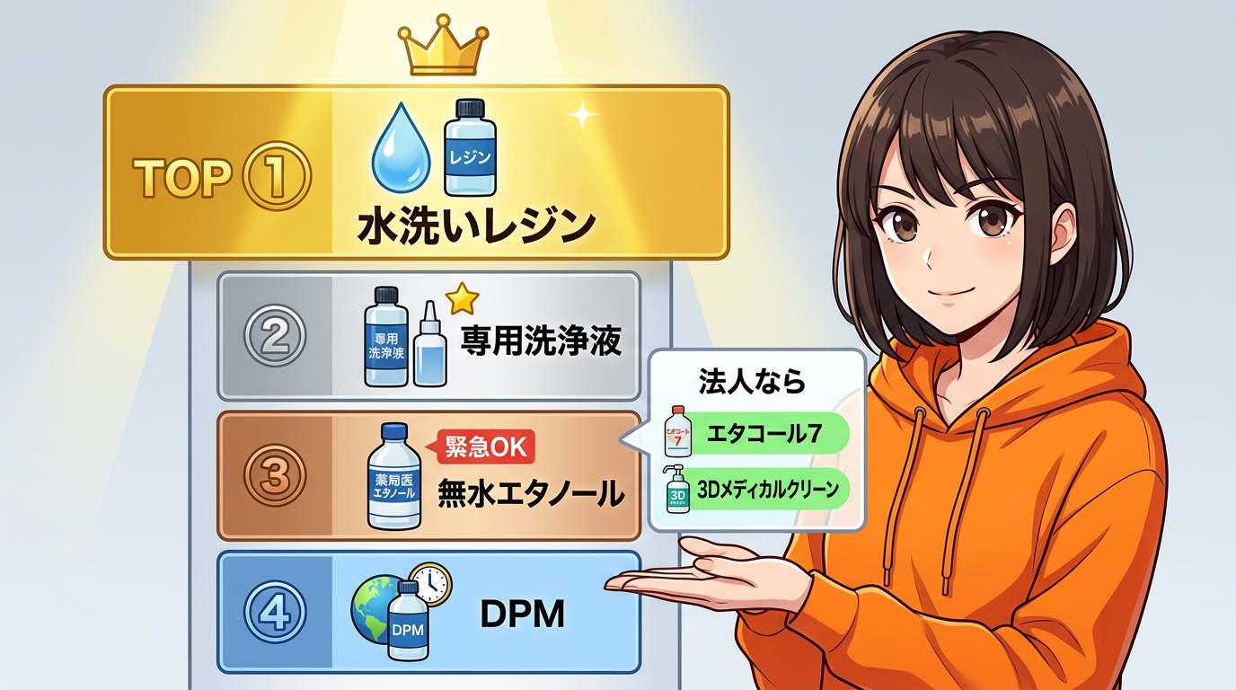> IPA品薄で困っている光造形ユーザーへ。エタコール7、Prusa DPM、無水エタノール、専用洗浄液、水洗いレジンまで代替品を全部比較。個人・法人別のおすすめ順位もまとめました。