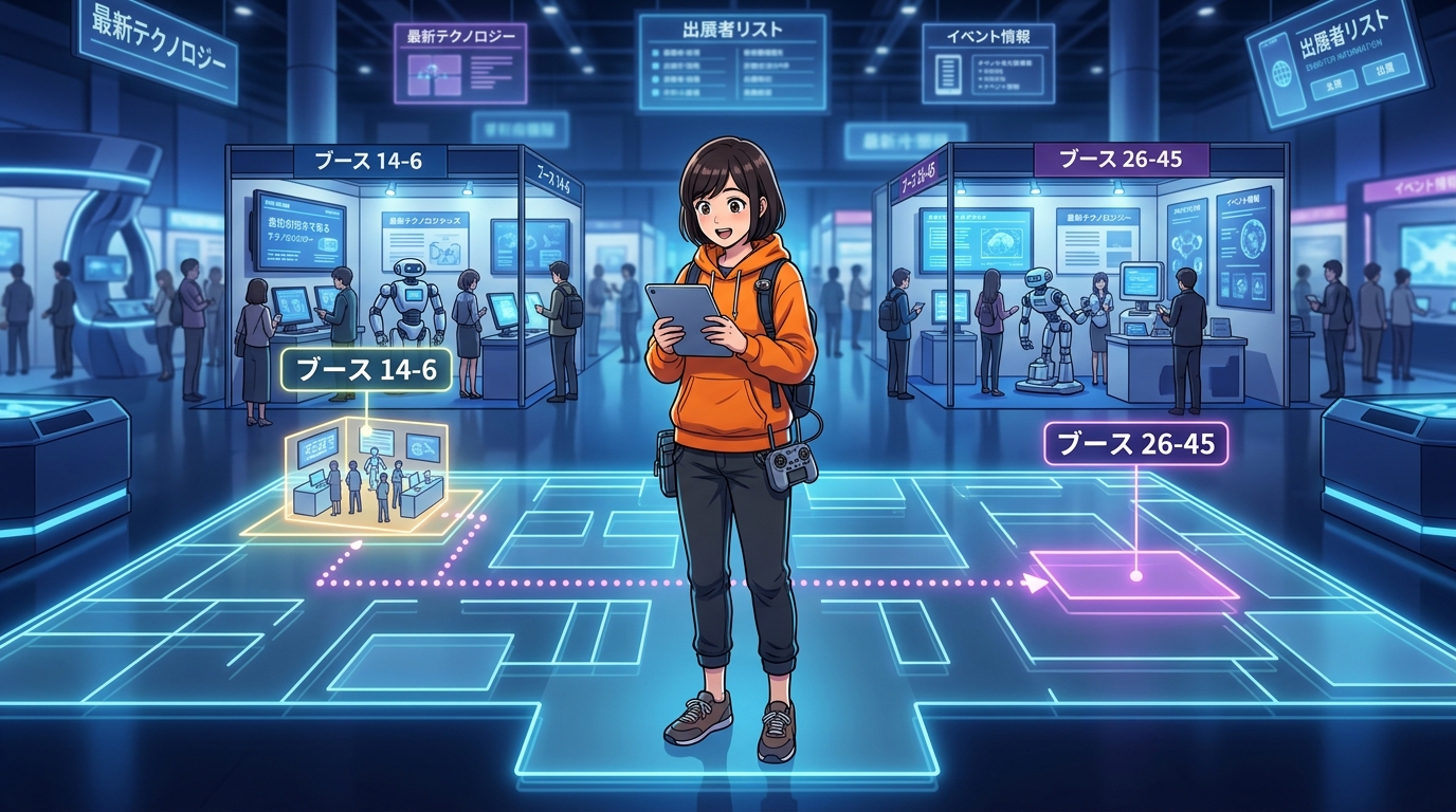 | scene/004.png | H2「日本3Dプリンター」直後 | 2ブース展開(14-6/26-45) |