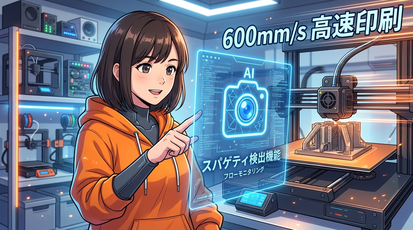 BambuLab X1-Carbonの先行機能が業界全体で標準化しつつあるという流れです。これからは「AIカメラがついていない機械はちょっと古い」と言われる時代が来るかもしれません。
