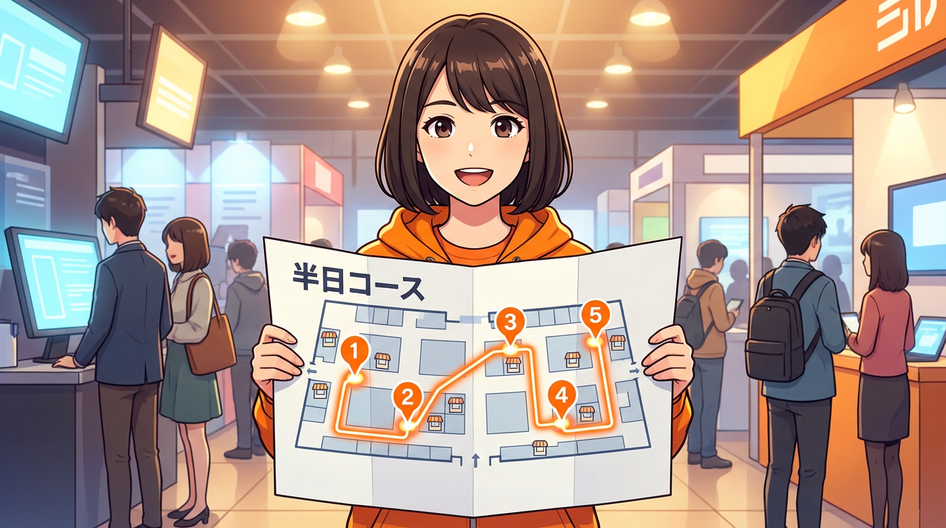 これで半日コースです。1日たっぷり使うなら、ここに各セミナーや業界団体ブースを足していけば充実します。