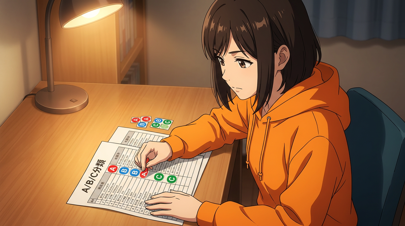 åºå±äŒæ¥ãªã¹ããA/B/Cã«åé¡ãã