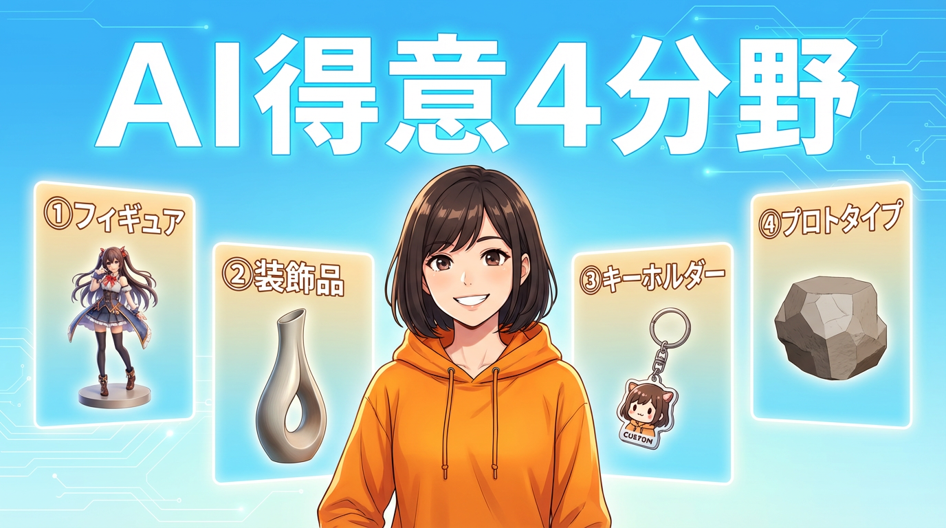 この4つに共通するのは「見た目が重要で、寸法精度は厳密でなくていい」ということ。ここがAIの得意フィールドです。