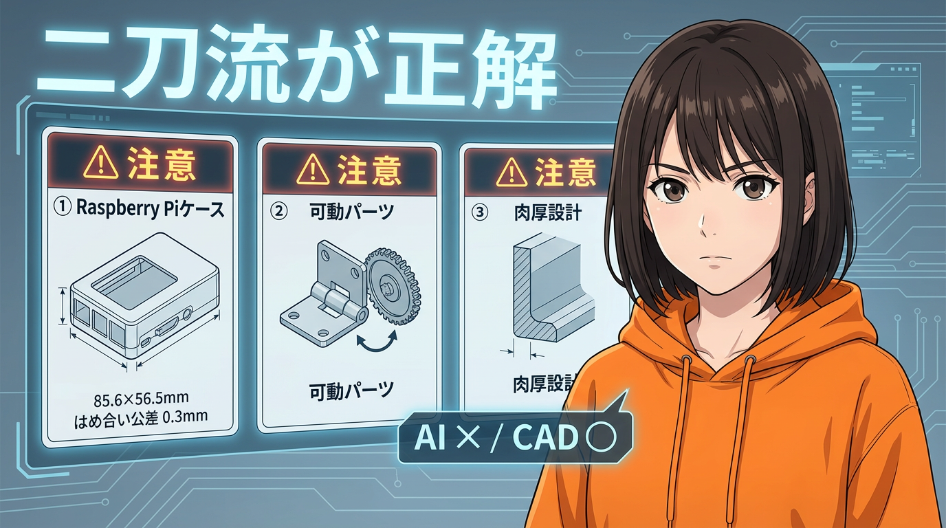 でもCADが不要になったわけじゃありません。フィギュアや装飾品はAIで、ケースやブラケットはCADで。用途でツールを選ぶ二刀流が新しいスタイルだと思っています。