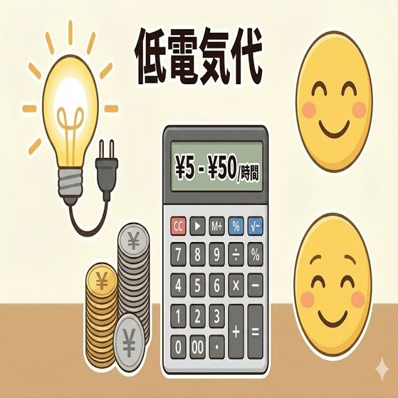 目安としては、1時間で数円〜数十円程度。FDMでも光造形でも、だいたいそのくらいです。