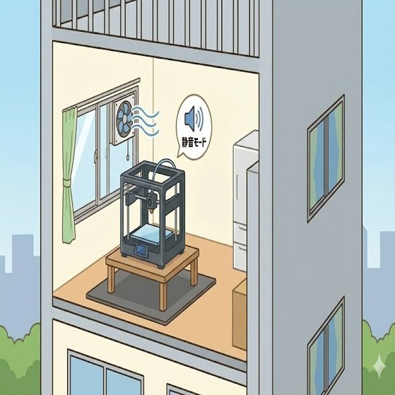 結論としては、一軒家でもアパートでもマンションでも、使う条件は基本一緒です。FDM機、特にA1 miniのような静かな機種なら、問題なく使えます👍 光造形は換気の問題があるので、設置場所と換気方法を工夫してくださいね。